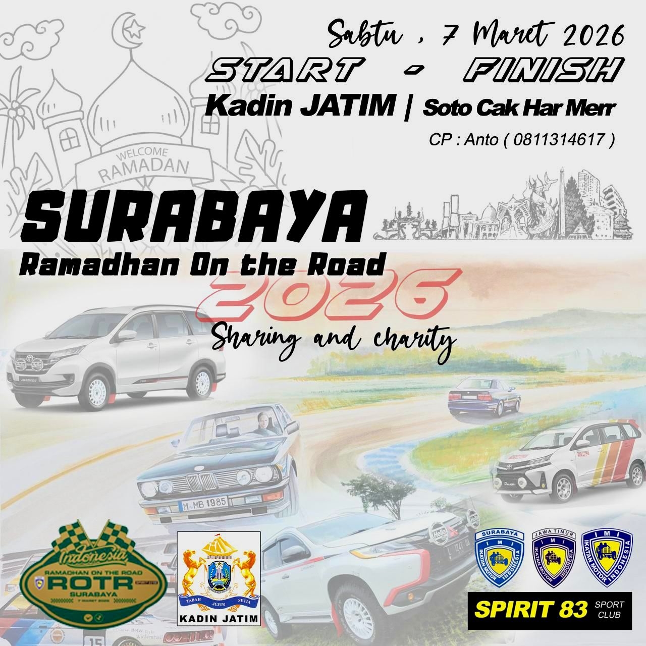 RACING4.NET - 03 Maret 2026 - Surabaya, Jatim - Geliat event time rally Ramadhan On The Road juga merambah ke Surabaya setelah sukses digelar sebelumnya di Jabar dan DIY. Diprakarsai oleh time rallyers senior Gerry Rosanto yang keluar sebagai juara ROTR tahun lalu, event ROTR Surabaya kali ini mendapat dukungan penuh dari Kamar Dagang dan Industri Jawa Timur alias KADIN JATIM.