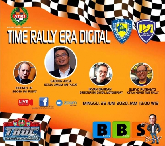 Acara yang dipandu oleh time rallyers veteran nasional Bengky Marpaung mulai jam 13.00 ini juga akan disatroni oleh Irvan Bahran Direktur Digital Motorsport IMI Pusat - yang kali kedua tampil - dan tentunya yang juga ditunggu adalah kehadiran Ketua Komisi Time Rally IMI Pusat yang juga perally senior, Suryo Putranto.