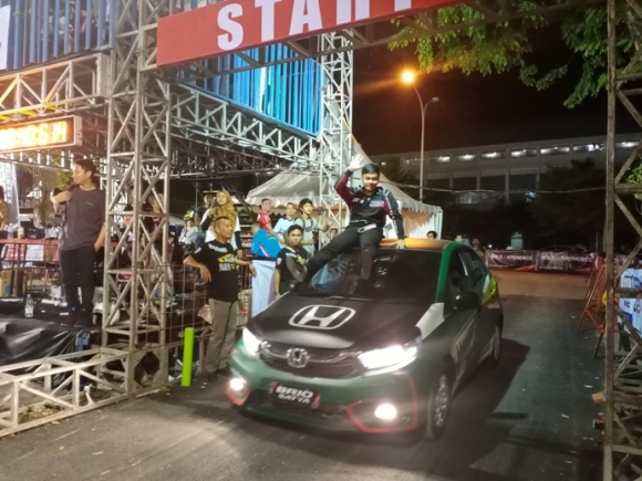 RACING4.NET - 01 September 2019 - Palembang, Sumsel - Lewat pertarungan ketat di Final Heat Honda Brio Slalom Challenge Special Kejurnas U23 putaran 5 yang digelar di pelataran Palembang Icon Mall hingga Minggu Malam 01/09, peslalom muda asal Garut Jawa Barat, Abghi Rezandi akhirnya mencatatkan dirinya sebagai yang tercepat dan juara umum.