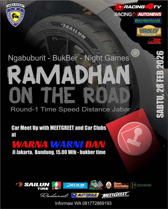 RACING4.NET - 24 Februari 2026 - Bandung - Perhelatan akbar temu komunitas mobil dan komunitas penggemar time rally di Bandung kembali bergulir weekend Sabtu 28 Februari 2026 sore ke malam di waktu berpuasa. Pertama kalinya dalam sejarah panjang games bermobil di jalan raya sembari ngabuburit hingga tarung malam hari pasca berbuka puasa bersama didukung oleh pabrikan ban kelas dunia SAILUN TIRES yang membawa brand Sailun Tire, RoadX dan BlackHawk.