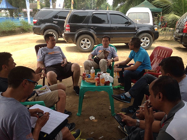 Racing4.Net - 15 Oktober 2015 - Selesai uji lintasan dan survey SS 7 sd 9 di kawasan Rambong Sialang Rally Indonesia 15/10 beberapa peraly dan navigator nasional nampak kongkow jelang survey akhir di SS 1 sd 3 sore hari.