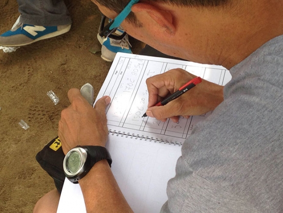 "Pacenote mencatat banyak tikungan tajam square dengan didahului jarak yang cukup panjang sebelum masuk ke titik apex...", jelas Anthony Sarwono yang tengah merapihkan pacenotenya. Mantap