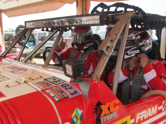 RACING4.NET - JULIAN JOHAN GT RADIAL TEAM KITAH. SPECIAL STAGE SPEED OFFROAD PALING OKE DAN BISA TAMPIL MENGHIBUR - 19 JUNI 2013 - Tidak berhasil menyelesaikan seluruh special stages lomba karena problem kaki-kaki mobil tidak membuat dropdown seorang JULIAN JOHAN yang akrab dipanggil JEJE. Di bawah naungan bendera GT RADIAL TEAM KITAH, JEJE merasakan atmosfir lain dan tetap menjalankan Visi Team yang akan selalu memberikan hiburan bagi pemerhati dan penonton Speed Offroad Nasional yang kali ini semua punggawa team beraksi di Putaran 3 Kejurnas Speed Offroad di Sirkuit Lanud Suryadarma Kalijati Subang Jawa Barat.
