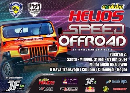 RACING4.NET - 15 Mei 2014 - Kembali menggeliat motorsport yang sangat digandrungi oleh komunitas dan khalayak umum penggila motorsport jip cepat nasional. Kejurnas Speed Offroad Evalube Helios Putaran 2 akan digelar tanggal 31 Mei sd 1 Juni di Sirkuit Cepat HARVEST CIty kawasan Cibubur Jawa Barat.