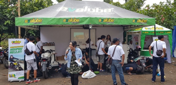 RACING4.NET - 01 Januari 2018 - Blitar, Jatim - PT Wiraswasta Gemilang Indonesia dengan produk pelumas andalannya EVALUBE Lubricants membuka tahun 2018 melakukan aktifasi promosi dan co-branding hingga kegiatan ganti oli plus diskon khusus bebas jasa ganti oli berhadiah di Kota Blitar Jawa Timur tanggal 1 Januari mulai pagi sampai sore hari.